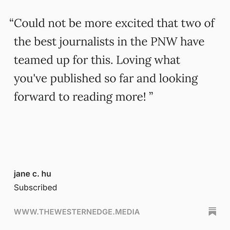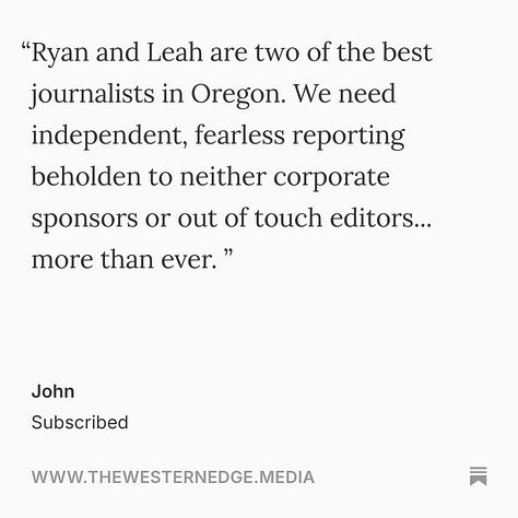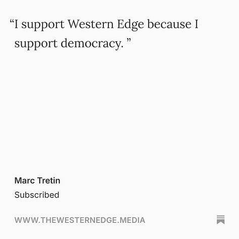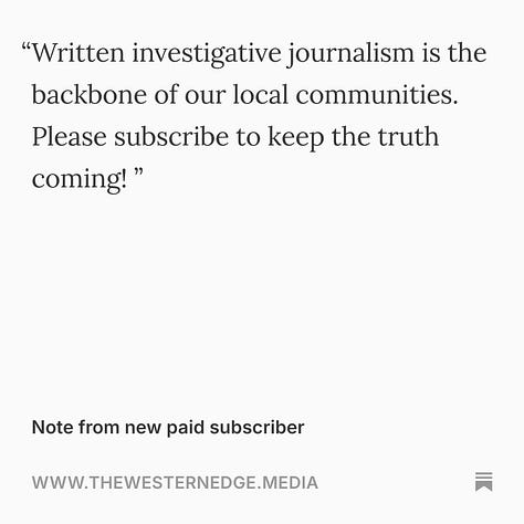 We can’t wait for you to see all of the other stories (and videos) we have planned, and we can guarantee that every dollar of your paid subscription will go directly into the journalism we make. As always, if you have a tip on a story, send us an email: hellowesternedge@gmail.com.